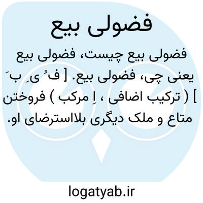 فضولی بیع. [ ف ُ ی ِ ب َ ] ( ترکیب اضافی، اِ مرکب ) فروختن متاع و ملک دیگری بلااسترضای او. ( آنندراج ).
