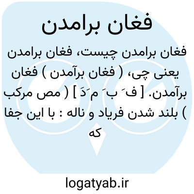 ( فغان برآمدن ) فغان برآمدن. [ ف َ ب َ م َدَ ] ( مص مرکب ) بلند شدن فریاد و ناله: