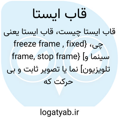 {freeze frame , fixed frame, stop frame} [سینما و تلویزیون] نما یا تصویر ثابت و بی حرکت که با چاپ مکررِ قاب تصویری مشخص به دست می آید