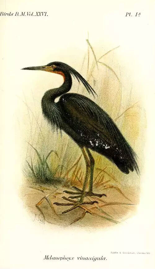 {Egretta vinaceigula} [زیست شناسی- علوم جانوری] گونه ای از حواصیلیان و راستۀ لک لک سانان با نوک باریک که پرهای جلوی گردنش قرمز است