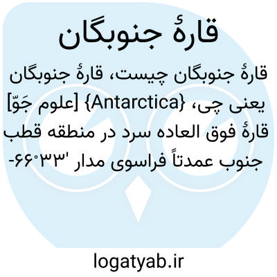 {Antarctica} [علوم جَوّ] قارۀ فوق العاده سرد در منطقه قطب جنوب عمدتاً فراسوی مدار '33 ْ66-