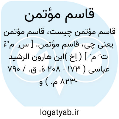 قاسم مؤتمن. [ س ِ م ُءْ ت َ م َ ] ( اِخ )ابن هارون الرشید عباسی ( 173 - 208 هَ. ق. / 790 -823 م. ) و برادر امین و مأمون است. هارون الرشید در زمان خود او را پس از دو برادر خود به ولیعهدی نصب کرد و به لقب مؤتمن ملقب گردانید و جزیره و ثغور وعواصم را به سال 186 هَ. ق. به نام وی که در آن هنگام جوانی بود و در دامان عبدالملک بن صالح پرورش می یافت جدا کرد. مأمون در امر این بخشها که به نام مؤتمن از قلمرو حکومت هارون جدا شده بود نظر داشت تا آنکه هارون به سال 192 هَ. ق. وی را برای آزمایش به حکومت «الرقة» برگزید. چون هارون الرشید مرد و امین به حکومت و خلافت اسلامی رسید مؤتمن را از جزیره به سال 193 هَ. ق. عزل کرد و بر قنسرین و عواصم باقی گذارد و چون مخالفت و مبارزه امین و مأمون بالا گرفت،مؤتمن نزد برادر خود مأمون به خراسان رفت و مأمون او را به سال 197 به گرگان فرستاد و وی در آنجا بماند و به سال 198 پس از کشته شدن امین او را از ولایت عهدی خلع کرد و فرمان داد که نام او را دیگر در خطبه در منابر نبرند وی در زمان مأمون در بغداد وفات یافت. رجوع به کامل بن اثیر 5- 57 و 60 و 62 و 97 و 131و تاریخ بغداد ج 12 ص 402 و النجوم الزاهرة ج 2 ص 119و الاعلام زرکلی چ 2 ج 6 ص 21 و تاریخ گزیده چ لیدن ج 1 ص 304 و حبیب السیر چ خیام ج 2 ص 32 و 246 و 247 شود.