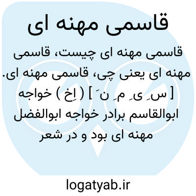 قاسمی مهنه ای. [ س ِ ی ِ م ِ ن َ ] ( اِخ ) خواجه ابوالقاسم برادر خواجه ابوالفضل مهنه ای بود و در شعر خود به قاسمی تخلص میکرد. اخلاق حمیده و اطوار پسندیده داشت. از اوست این مطلع: