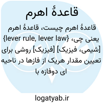 {lever rule, lever law} [شیمی، فیزیک] [فیزیک] روشی برای تعیین مقدار هریک از فازها در ناحیه ای دوفازه با استفاده از نمودار فاز [شیمی] قاعده ای که براساس آن مقادیر نسبی دو فاز a و b در حالت تعادل به یکدیگر مرتبط می شوند