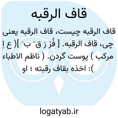 قاف الرقبه. [ فُرْ رَ ق َ ب َ ]( ع اِ مرکب ) پوست گردن. ( ناظم الاطباء ): اخذه بقاف رقبته؛ او را گرفت به پوست گردن وی. ( ناظم الاطباء ).