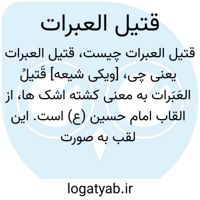 [ویکی شیعه] قَتیلُ العَبَرات به معنی کشته اشک ها، از القاب امام حسین (ع) است.