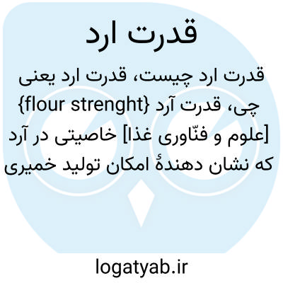 {flour strenght} [علوم و فنّاوری غذا] خاصیتی در آرد که نشان دهندۀ امکان تولید خمیری محکم و کشسان از آن است