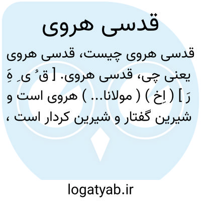 قدسی هروی. [ ق ُ ی ِ هَِ رَ ] ( اِخ ) ( مولانا... ) هروی است و شیرین گفتار و شیرین کردار است، و مرض لقوه دارد، و از این جهت آب بسیار بی اختیار از دهان او روان است و قطره قطره از آن چکان، و در این بیت گفته:
