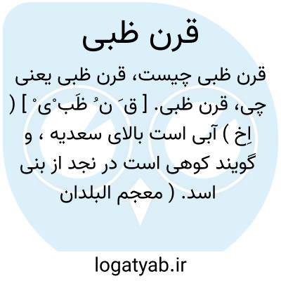 قرن ظبی. [ ق َ ن ُ ظَب ْی ْ ] ( اِخ ) آبی است بالای سعدیه، و گویند کوهی است در نجد از بنی اسد. ( معجم البلدان ).