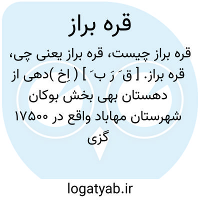 قره براز. [ ق َ رَ ب َ ] ( اِخ )دهی از دهستان بهی بخش بوکان شهرستان مهاباد واقع در 17500 گزی جنوب خاوری بوکان و 14 هزارگزی خاور شوسه بوکان به سقز. موقع جغرافیایی آن کوهستانی و معتدل مالاریایی است. سکنه آن 451 تن. آب آن از زرینه رودو محصولات آن غلات، چغندرقند، توتون، حبوبات. شغل اهالی زراعت و گله داری و صنایع دستی آنان جاجیم بافی است. راه مالرو دارد. ( از فرهنگ جغرافیایی ایران ج 4 ).