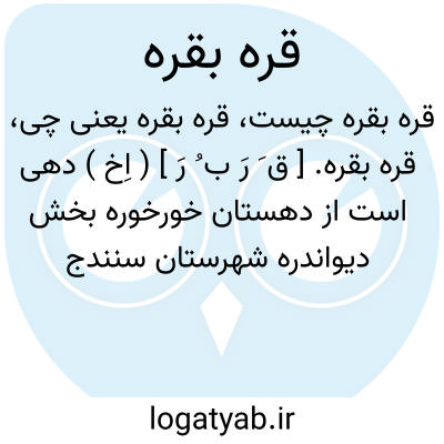 قره بقره. [ ق َ رَ ب ُ رَ ] ( اِخ ) دهی است از دهستان خورخوره بخش دیواندره شهرستان سنندج واقع در 68000 گزی باختر دیواندره و 16000 گزی جنوب باختر خورخوره. موقع جغرافیایی آن کوهستانی و سردسیر است. سکنه آن 88 تن. آب آن از چشمه و محصولات آن غلات، توتون، حبوبات و شغل اهالی زراعت و گله داری و صنایع دستی آنان جاجیم بافی است. راه مالرو دارد. ( از فرهنگ جغرافیایی ایران ج 5 ).