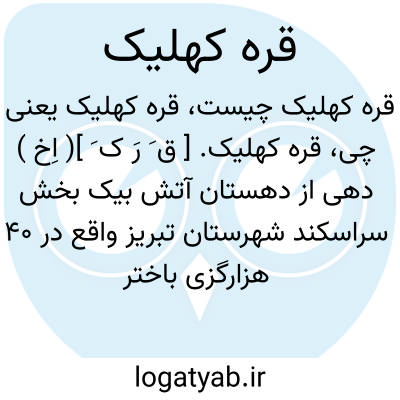 قره کهلیک. [ ق َ رَ ک َ ]( اِخ ) دهی از دهستان آتش بیک بخش سراسکند شهرستان تبریز واقع در 40 هزارگزی باختر سراسکند و 32 هزارگزی شوسه تبریز به میانه. موقع جغرافیایی آن کوهستانی ومعتدل است. سکنه آن 598 تن. آب آن از رودخانه و محصول آن غلات و حبوبات. شغل اهالی زراعت و گله داری است. راه مالرو دارد. ( از فرهنگ جغرافیایی ایران ج 4 ).