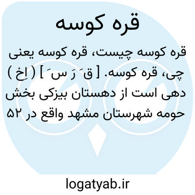 قره کوسه. [ ق َ رَ س َ ] ( اِخ ) دهی است از دهستان بیزکی بخش حومه شهرستان مشهد واقع در 52 هزارگزی شمال باختری مشهد و 2 هزارگزی شمال شوسه مشهد به قوچان. موقع جغرافیایی آن جلگه و معتدل است. سکنه آن 220 تن. آب آن از قنات و محصول آن غلات و چغندرقند. شغل اهالی زراعت و مالداری است. راه مالرو دارد. ( از فرهنگ جغرافیایی ایران ج 9 ).