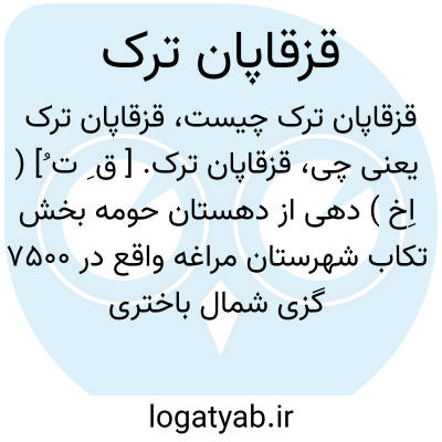قزقاپان ترک. [ ق ِ ت ُ] ( اِخ ) دهی از دهستان حومه بخش تکاب شهرستان مراغه واقع در 7500 گزی شمال باختری تکاب و 3 هزارگزی جنوب راه ارابه رو تکاب به شاهین دژ. موقع جغرافیایی آن کوهستانی و معتدل سالم است. سکنه آن 236 تن. آب آن از چشمه سارها و محصول آن غلات، کرچک، حبوبات. شغل اهالی زراعت و گله داری و صنایع دستی زنان جاجیم بافی است. راه مالرو دارد. ( از فرهنگ جغرافیایی ایران ج 4 ).