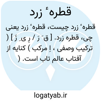قطره زرد. [ ق َ رَ / رِ ی ِ زَ ] ( ترکیب وصفی، اِ مرکب ) کنایه از آفتاب عالم تاب است. ( بهار عجم ) ( آنندراج ).