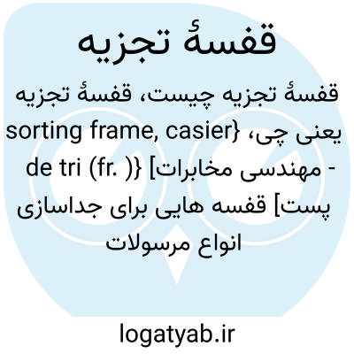 {sorting frame, casier de tri (fr. )} [مهندسی مخابرات - پست] قفسه هایی برای جداسازی انواع مرسولات پُستی، متناسب با ابعاد آنها