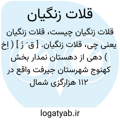 قلات زنگیان. [ ق َ زَ ] ( اِخ ) دهی از دهستان نمدار بخش کهنوج شهرستان جیرفت واقع در 112 هزارگزی شمال خاوری کهنوج سر راه مالرو ریگان به کهنوج. این ده کوهستانی و گرمسیری است. سکنه آن 80 تن. آب آن از قنات و محصول آن غلات، حبوب و خرما و شغل اهالی زراعت است. راه مالرو دارد. ( از فرهنگ جغرافیایی ایران ج 8 ).