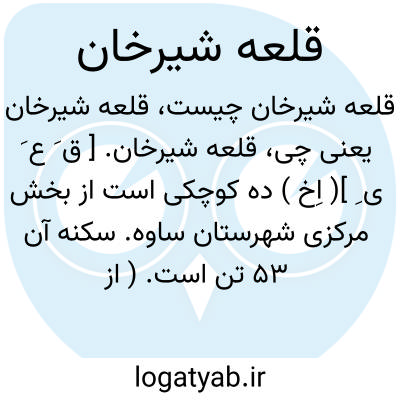 قلعه شیرخان. [ ق َ ع َ ی ِ ]( اِخ ) ده کوچکی است از بخش مرکزی شهرستان ساوه. سکنه آن 53 تن است. ( از فرهنگ جغرافیایی ایران ج 1 ).