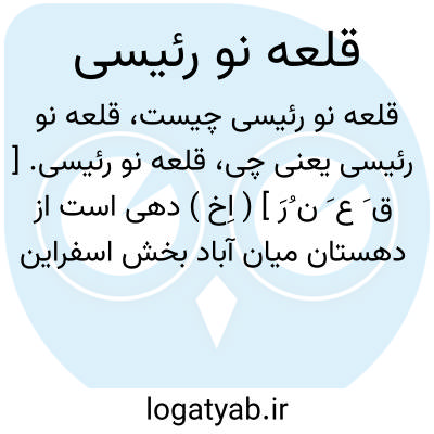 قلعه نو رئیسی. [ ق َ ع َ ن ُرَ ] ( اِخ ) دهی است از دهستان میان آباد بخش اسفراین شهرستان بجنورد، واقع در 18هزارگزی باختر اسفراین و8هزارگزی باختر شوسه بجنورد به سبزوار. موقع جغرافیایی آن جلگه و هوای آن گرمسیری است. سکنه آن 415 تن، آب آن از رودخانه و محصول آن غلات، بنشن، پنبه، میوه جات، و شغل اهالی زراعت و مالداری و قالی بافی است.راه مالرو دارد. ( از فرهنگ جغرافیایی ایران ج 9 ).