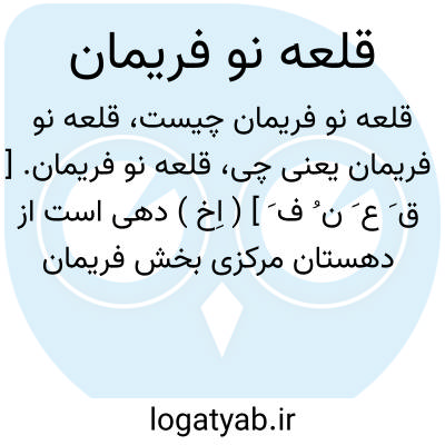 قلعه نو فریمان. [ ق َ ع َ ن ُ ف َ ] ( اِخ ) دهی است از دهستان مرکزی بخش فریمان شهرستان مشهد، واقع در 10هزارگزی خاور فریمان و سر راه شوسه فریمان به تربت جام موقع جغرافیایی آن کوهستانی و هوای آن معتدل است. سکنه آن 1283 تن است. آب آن از قنات و محصول آن غلات، پنبه، چغندر و شغل اهالی زراعت است. راه اتومبیل رو دارد. ( از فرهنگ جغرافیایی ایران ج 9 ).