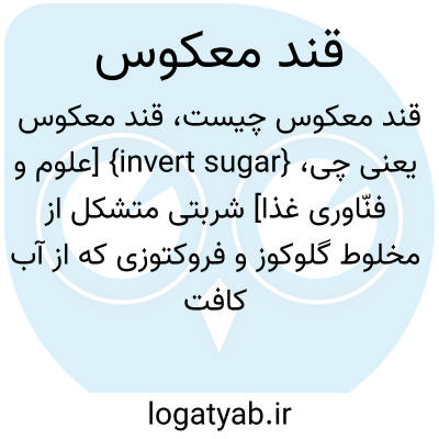 {invert sugar} [علوم و فنّاوری غذا] شربتی متشکل از مخلوط گلوکوز و فروکتوزی که از آب کافت اسیدی یا زی مایه ای/ آنزیمی ساکاروز حاصل می شود و چرخش نوری آن وارونه است