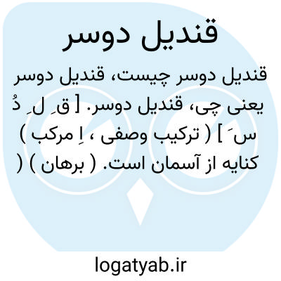 قندیل دوسر. [ ق ِ ل ِ دُ س َ ] ( ترکیب وصفی، اِ مرکب ) کنایه از آسمان است. ( برهان ) ( آنندراج ) ( ناظم الاطباء ).