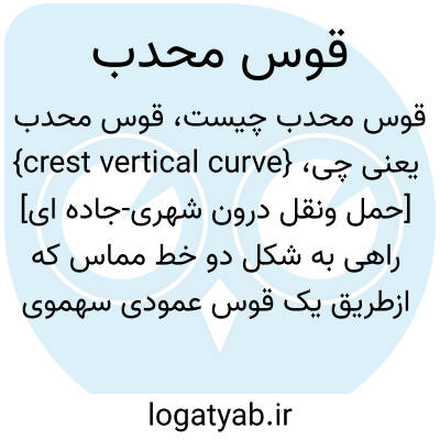 {crest vertical curve} [حمل ونقل درون شهری-جاده ای] راهی به شکل دو خط مماس که ازطریق یک قوس عمودی سهموی به یکدیگر وصل می شوند و در آن مماس ورودی سربالا و مماس خروجی سرازیر است