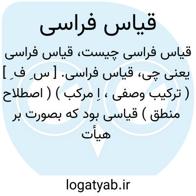 قیاس فراسی. [ س ِ ف ِ ] ( ترکیب وصفی، اِ مرکب ) ( اصطلاح منطق ) قیاسی بود که بصورت بر هیأت تمثیل بود و به ماده ای از مواد دلیل و علامت و به این قیاس از هیأتی بدنی بر خلقی نفسانی دلیل سازند. ( فرهنگ فارسی معین از اساس الاقتباس ص 339 ).