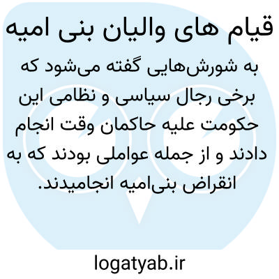 [ویکی فقه] از جمله مسائلی که در حکومت ظالمانه بنی امیه حائز اهمیت است و در انقراض بنی امیه جایگاه مهم و ویژه ای دارد شورش های متعددی بود که از دل این دولت ایجاد گشت، به این معنا که برخی رجال سیاسی در این دولت بر علیه حاکمان زمان خود دست به قیام زدند که از آن جمله می توان به شورش های عبدالرحمن بن اشعث و موسی بن عبدالله خازمی و زنگیان و سایر موارد اشاره کرد.