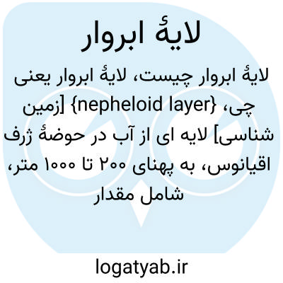 {nepheloid layer} [زمین شناسی] لایه ای از آب در حوضۀ ژرف اقیانوس، به پهنای 200 تا 1000 متر، شامل مقدار متنابهی رسوب معلق