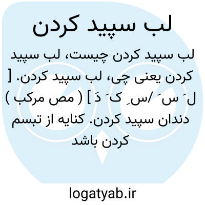 لب سپید کردن. [ ل َ س َ /س ِ ک َ دَ ] ( مص مرکب ) دندان سپید کردن. کنایه از تبسم کردن باشد یعنی نیم خند شدن. ( برهان ):