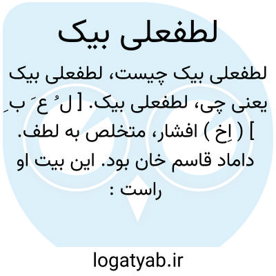 لطفعلی بیک. [ ل ُ ع َ ب ِ ] ( اِخ ) افشار، متخلص به لطف. داماد قاسم خان بود. این بیت او راست: