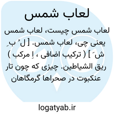 لعاب شمس. [ ل ُ ب ِ ش َ ] ( ترکیب اضافی، اِ مرکب ) ریق الشیاطین. چیزی که چون تار عنکبوت در صحراها گرمگاهان در هوا دیده شود. آنچه گرمگاه بینند از خورشید چون تار عنکبوت. ( منتهی الارب ). خیط باطل. مخاط شمس. مخاط شیطان. آنچه گرمگاه بینند از او چون فرت و تار عنکبوت. سهام. || کنایه از سراب و آن زمین خشکی باشد که از دور مثل آب نماید. ( آنندراج ).