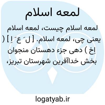 لمعه اسلام. [ ل َ ع َ اِ ] ( اِخ ) دهی جزء دهستان منجوان بخش خداآفرین شهرستان تبریز، واقع در 35هزارگزی باختری خداآفرین و 35500گزی شوسه اهر به کلیبر. کوهستانی، معتدل و دارای 86 تن سکنه. آب آن از چشمه. محصول آنجا غلات. شغل اهالی زراعت و گله داری و راه آن مالرو است. ( از فرهنگ جغرافیایی ایران ج 4 ).