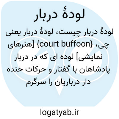 {court buffoon} [هنرهای نمایشی] لوده ای که در دربار پادشاهان با گفتار و حرکات خنده دار درباریان را سرگرم می کرد