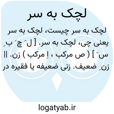 لچک به سر. [ ل َ چ َ ب ِ س َ ] ( ص مرکب، اِ مرکب ) زن. || زن ِ ضعیف. زنی ضعیفه یا فقیره در مقام جلب شفقت و رقت گویند: من یک لچک بسری بیش نیستم. من یک لچک بسرم با سه یتیم.