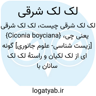 {Ciconia boyciana} [زیست شناسی- علوم جانوری] گونه ای از لک لکیان و راستۀ لک لک سانان با پا و گردن طویل که پرهای پروازی سفید و دم بلند و زینتی دارد
