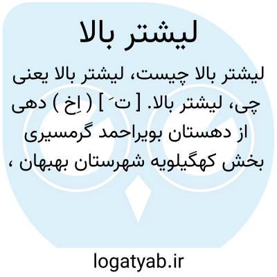 لیشتر بالا. [ ت َ ] ( اِخ ) دهی از دهستان بویراحمد گرمسیری بخش کهگیلویه شهرستان بهبهان، کنار شوسه گچساران به بهبهان. جلگه، گرمسیر و مالاریائی. دارای 641 تن سکنه. آب آن از چشمه. محصول آنجا غلات، برنج، کنجد، پشم و لبنیات. شغل اهالی زراعت و حشم داری و صنایع دستی زنان، قالیچه و جوال وجاجیم بافی و راه آن اتومبیل رو است. ساکنین از طایفه بویراحمد گرمسیری هستند. لیشتر پائین جزء این آبادی منظور شده است. ( از فرهنگ جغرافیائی ایران ج 6 ).