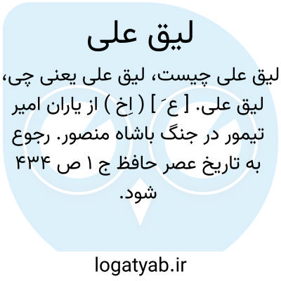 لیق علی. [ ع َ ] ( اِخ ) از یاران امیر تیمور در جنگ باشاه منصور. رجوع به تاریخ عصر حافظ ج 1 ص 434 شود.