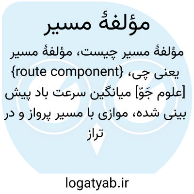 {route component} [علوم جَوّ] میانگین سرعت باد پیش بینی شده، موازی با مسیر پرواز و در تراز پرواز برای کل مسیر متـ. مؤلفۀ باد مسیر