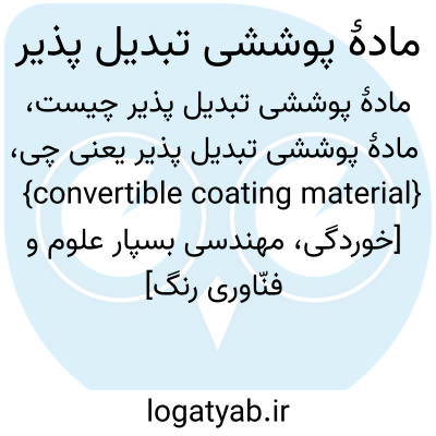 {convertible coating material} [خوردگی، مهندسی بسپار علوم و فنّاورى رنگ] نوعی مادۀ پوششی که در صورت خشک شدن در نتیجۀ اکسایش یا دیگر واکنش های شیمیایی، فیلم (film ) حاصل از آن در حلاّل اصلی نامحلول است