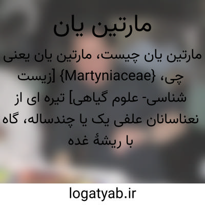 {Martyniaceae} [زیست شناسی- علوم گیاهی] تیره ای از نعناسانان علفی یک یا چندساله، گاه با ریشۀ غده ای، دارای چهار سرده و سیزده گونه که محدود به برّ جدید هستند؛ گیاهان این تیره کرک های لعاب داری دارند که حالتی چسبناک و لزج به برگ ها و ساقه می دهد و میوه های آن قلاب دا...
