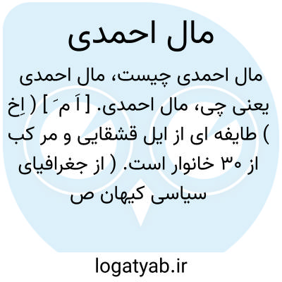 مال احمدی. [ اَ م َ ] ( اِخ ) طایفه ای از ایل قشقایی و مر کب از 30 خانوار است. ( از جغرافیای سیاسی کیهان ص 82 ).
