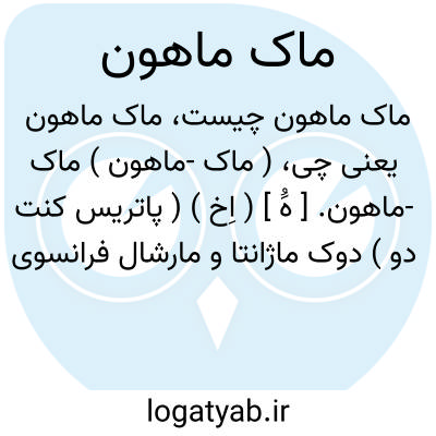 ( ماک -ماهون ) ماک -ماهون. [ هَُ ] ( اِخ ) ( پاتریس کنت دو ) دوک ماژانتا و مارشال فرانسوی که در سولی متولد شد ( 1808-1893م. ) و در جنگهای کریمه با تصرف مالاکوف و در ایتالیا در فتح ماژانتا لیاقت خود را آشکارا ساخت. در سالهای 1864-1870 فرمانروای کل الجزایر بود. در سال 1873 ریاست جمهوری فرانسه را پذیرفت ولی در سال 1879 استعفا کرد. ( از لاروس ).