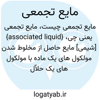 {associated liquid} [شیمی] مایع حاصل از مخلوط شدن مولکول های یک ماده با مولکول های یک حلاّل که در آن مولکول ها با پیوندهایی ضعیف تر از پیوندهای شیمیایی معمولی با هم ارتباط دارند