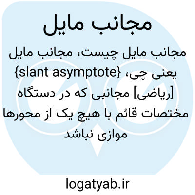 {slant asymptote} [ریاضی] مجانبی که در دستگاه مختصات قائم با هیچ یک از محورها موازی نباشد