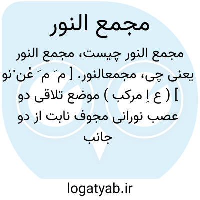 مجمعالنور. [ م َ م َ عُن ْنو ] ( ع اِ مرکب ) موضع تلاقی دو عصب نورانی مجوف نابت از دو جانب دماغ مایل که آن هر دو در آن جا تلاقی کنند. ( نفایس الفنون ). موضعی در دماغ که دو عصب مجوف بهم رسیده اند. ( یادداشت به خط مرحوم دهخدا ). و رجوع به ماده بعد و «مجمع نور» ذیل ترکیبهای مجمع شود.