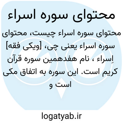 [ویکی فقه] اِسراء، نام هفدهمین سوره قرآن کریم است.