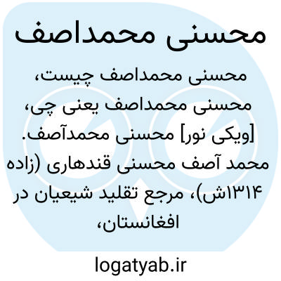 [ویکی نور] محسنی محمدآصف. محمد آصف محسنی قندهاری (زاده ۱۳۱۴ش)، مرجع تقلید شیعیان در افغانستان، و یکی از رهبران مذهبی و جهادی افغانستان، از معدود علمای شیعه پشتون، مدافع تقریب مذاهب اسلامی، رییس شورای علمای شیعه افغانستان، و بنیانگذار حوزه علمیه و دانشگاه خاتم النبیین در کابل. او همچنین عضو شورای عالی مجمع جهانی اهل بیت، رهبر پیشین حزب حرکت اسلامی افغانستان و مؤسس تلویزیون تمدن است، وی به زبان های فارسی، عربی، اردو و پشتو مسلط است.