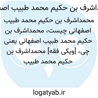 [ویکی فقه] محمداشرف بن حکیم محمد طبیب اصفهانی، از فضلا و دانشمندان اصفهان در قرن یازده هجری بوده است.